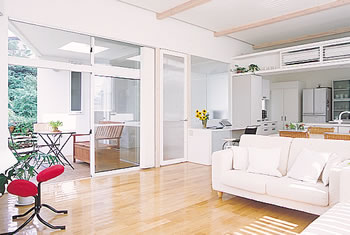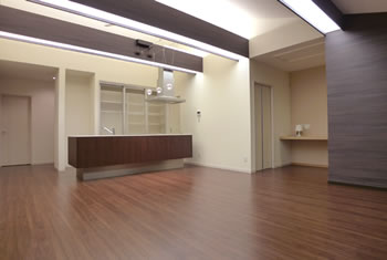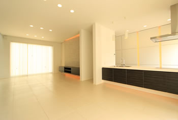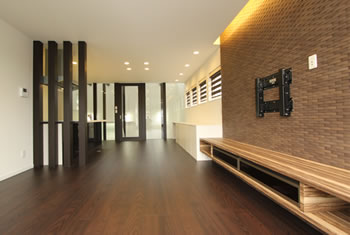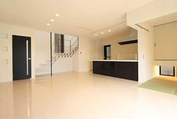 リビングルームのデザインを考えた場合、最もポイントとなるのは「空間」の見せ方です。壁面や天井、床の高さや面としての形状に変化を持たせることによって、デザイン性の高い空間を造りだすことができます。さらに、壁・床・天井などの素材やカラーリングを工夫するだけでも、デザイン性の向上にかなりの効果があります。